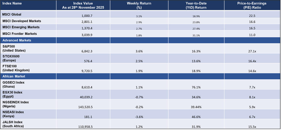 Weekly Performance of Major Global Indices